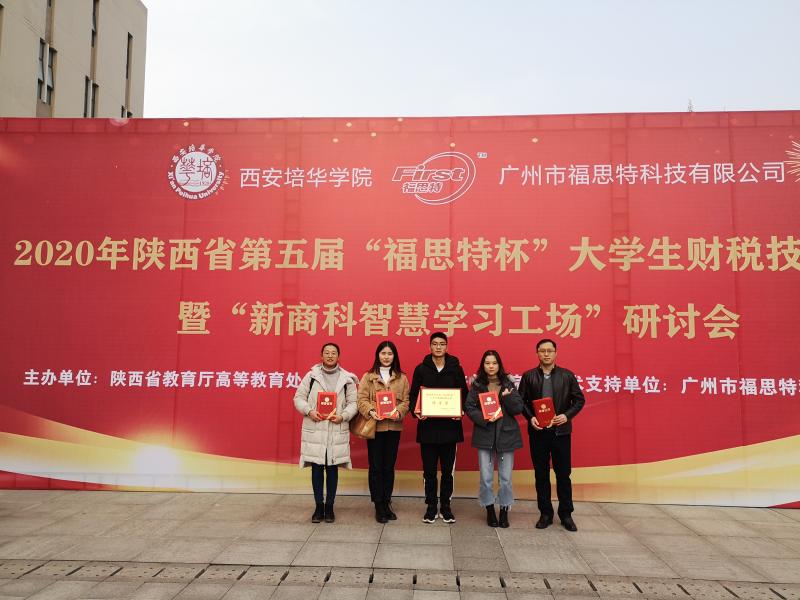 2020年11月28日,由陕西省教育厅高等教育处主办的2020年陕西省第五届“福思特杯”大学生财税技能竞赛暨“新商科智慧学习工场”研讨会,在西安隆重举行。来自全省42所高校的近400名师生参加了竞赛。
