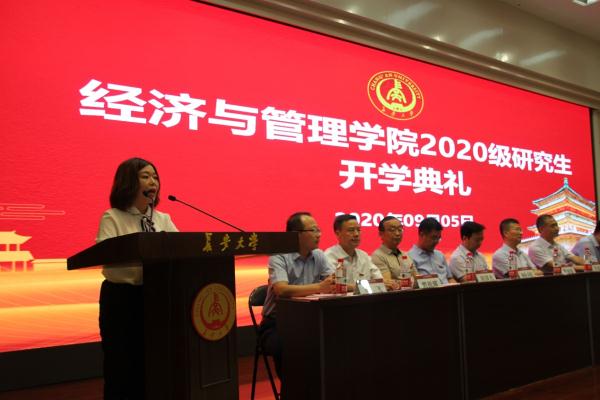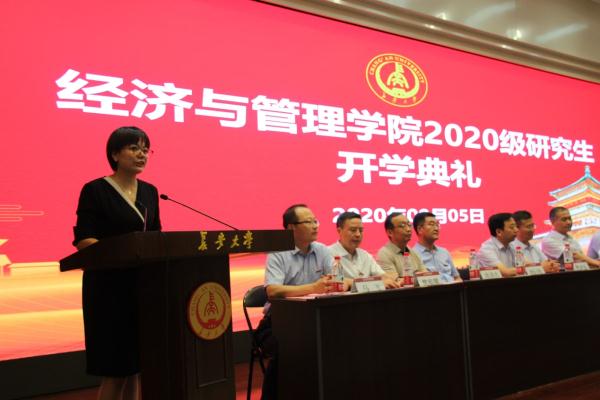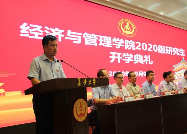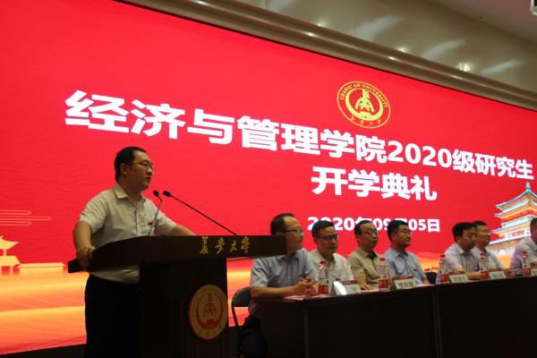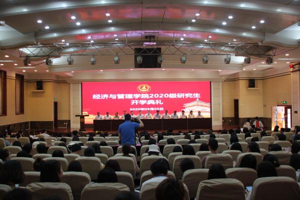 2020年9月5日上午十点,经济与管理学院2020级研究生开学典礼在校本部学术交流中心举行。学院党政领导、导师代表、学科责任教授代表、专业责任教授代表等出席,全体2020级研究生参加了此次开学典礼。典礼由学院副院长马飞主持。