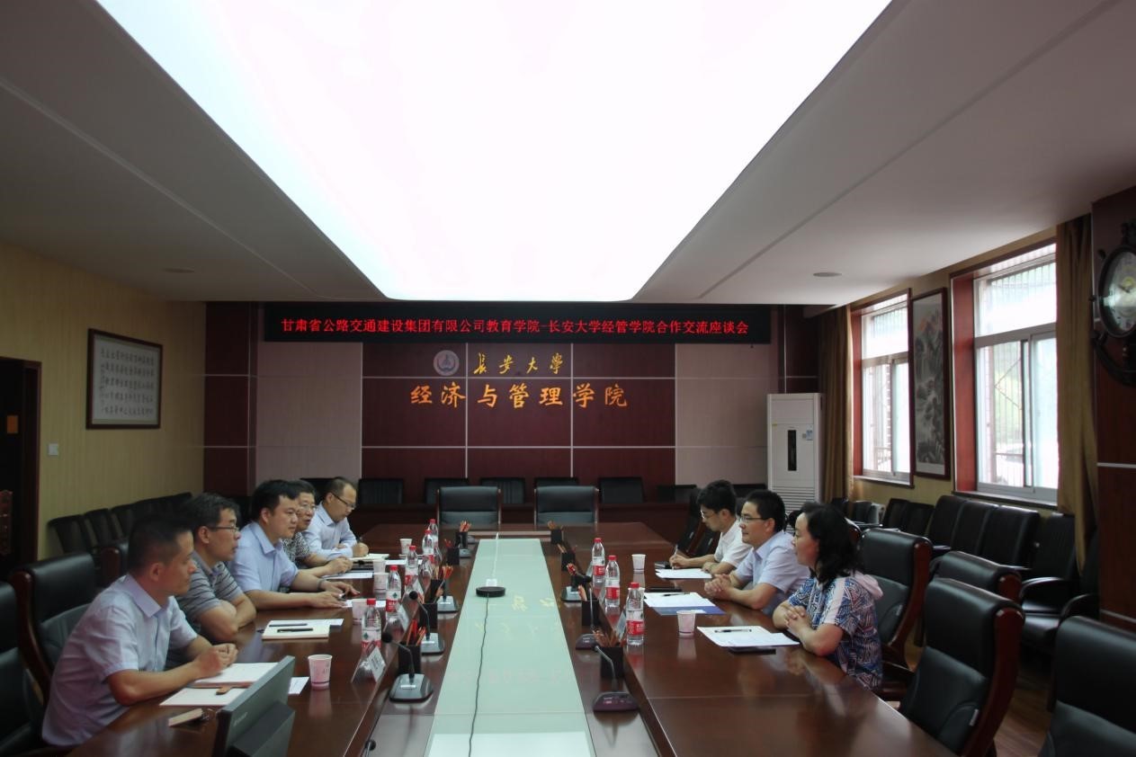 2020年8月21日,甘肃省公路交通建设集团有限公司教育学院畅世锐副院长一行来我院交流。院长杜强、副书记张建斌、副书记李宏伟、副院长马飞、专业学位教育与对外培训中心夏明学参加了座谈会。