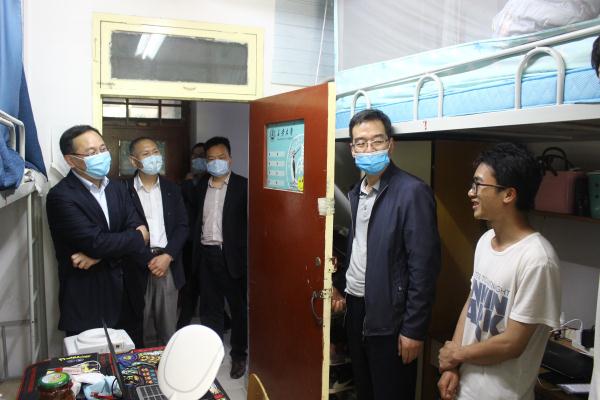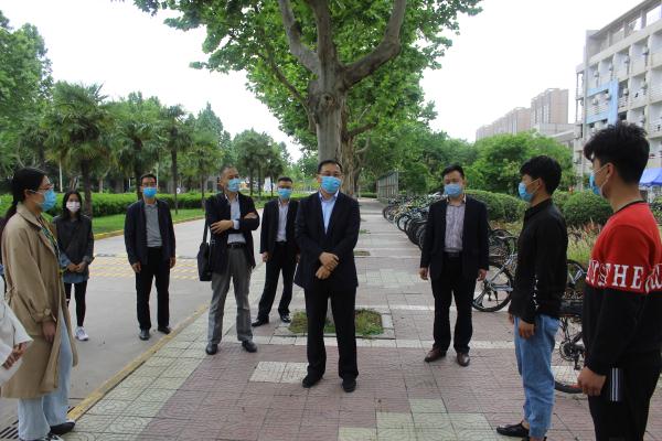 王建伟副校长首先来到北校区4号和6号学生公寓,看望慰问学院返校学生,并与由学生党员、骨干组成的楼层长进行了亲切交流。他表示,为了迎接毕业生返校,学校进行了周密的安排部署,进行了多次演练,当前,疫情防控工作挑战多,任务重,需要每一位同学的共同参与和密切配合。他指出,希望同学们强化责任担当,发挥学生党员、骨干的模范带头作用,以高度的责任心履行楼层长工作职责,严格按照学校规定开展社区网格化管理;希望同学们及时保持信息沟通,对于学生中间出现的问题要及时上报,对学生存在的困难要及时反映;希望同学们进一步提高防护意识,做好个人防护。