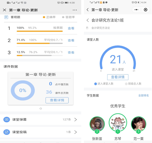 她认为在日后线下课程教学中,线上教学平台作为一种有益补充,可以与学生课余答疑互动,并且可以提前发课件,让学生预习、答题、投票统计等等,是一种非常好的教学手段。