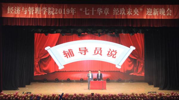 2019年12月8日晚7时,学院于长安文化艺术中心大礼堂举办了2019年“七十华章•经玖未央”迎新晚会。校党委副书记黎开谊、学生就业处、保卫处、校团委领导应邀出席本次晚会,学院党委书记魏一虎、院长袁长伟、其他学院党政领导、各系室主任、班主任老师、全体辅导员及千余名学生观看了此次晚会。