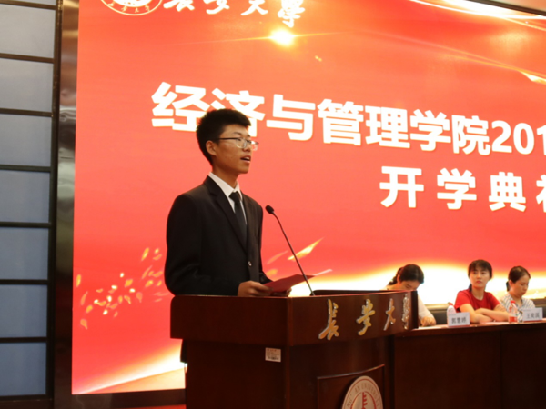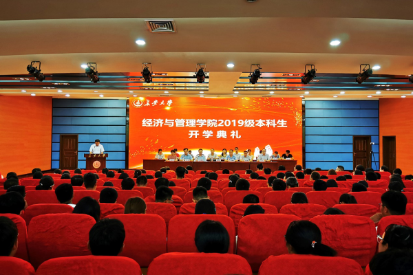 9月9日19时,经济与管理学院2019级本科生开学典礼暨入学教育大会在渭水校区会议中心二楼报告厅隆重举行。院长袁长伟、院党委副书记兼行政副院长张建斌、副院长孙启鹏、副院长杜强、校友代表雷增弟、院长助理马飞、各专业系主任、全体辅导员、2019级班主任以及2019级全体本科生出席本次典礼。典礼由院党委副书记吴喜梅主持。