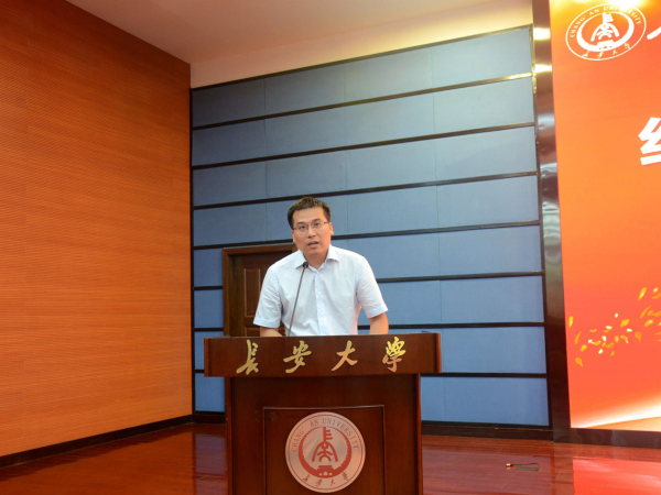 院长袁长伟首先代表学院全体老师对来自全国各地的新生表示了热烈的欢迎。他以“长安十二时辰”为切入点,教导同学们珍惜大学时光,勇做长安大学的新主人。袁院长从师兄的角度,通过自己求学、教学、研究中的感悟,激励新生们认真学好专业课程,为在新时代社会主义经济建设宽广舞台上大有可为打下坚实的基础。袁院长以好奇、好问、好思为要求,希望新生们能够对知识保持旺盛的好奇心,多查资料、多探索、多交流、勤思考,在学习好专业知识的同时,完善自己的逻辑思维,锻炼出良好的学习能力。讲话最后,袁院长给新生们讲述了校优秀校友浙江消防队员吕挺、港珠澳大桥的总工程师苏权科的故事,激励新生践行“弘毅明德,笃学,创新”的校训精神,成为德才兼备的长大优秀学子。