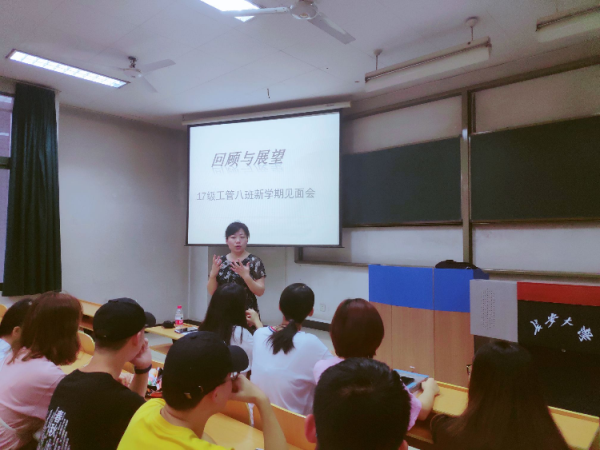 为了帮助同学们适应专业分流后在新班级新专业的学习生活,2019年8月25日,17级工管八班在渭水校区修远2205教室举办以“回顾与展望”为主题的新学期师生见面会。本次活动由17级工管八班班主任王楠老师组织,八班全体同学参加。