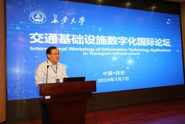 7月7日,2019交通基础设施数字化国际论坛在长安大学雁塔校区伯声报告厅举行,论坛邀请到来自美国、澳大利亚、香港等国家和地区的专家学者出席,校内外100余名教师和学生参加本次论坛。论坛由经济与管理学院院长袁长伟教授主持。