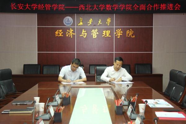 会上,袁长伟院长和郭真华院长签署了长安大学经济与管理学院——西北大学数学学院院际合作协议书,以推动两个学院的全面合作。