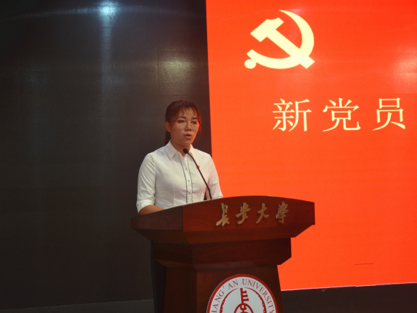 学生冯成晴代表新党员发言,号召全体党员不忘初心,始终保持善于学习、善于交流的态度,以身边的优秀党员为榜样,切实在组织上、行动上、思想上入党。