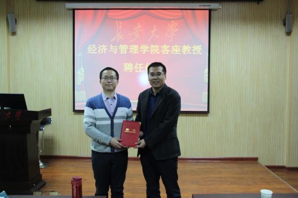 11月19日上午,经济与管理学院客座教授聘任仪式在学院六楼MBA案例室举行。院长袁长伟出席,并为受聘客座教授颁发聘书。学院教师及学生参加了聘任仪式,副院长杜强主持仪式。