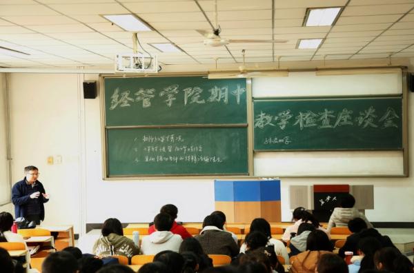 为深入了解学院学风教风建设情况,进一步提高本科教育教学质量,我院于2018年11月12日中午在修远教学楼3101举办了期中教学检查座谈会。参与本次座谈会的有经管学院副院长孙启鹏、专业建设与教学主管许静及渭水校区各年级各班学生代表。
