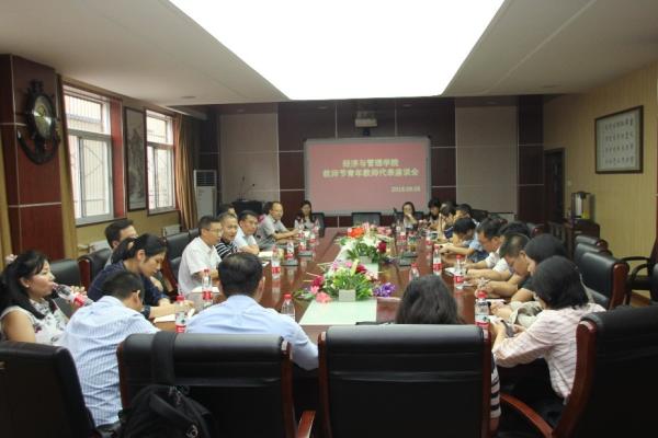 2018年9月6日上午,经济与管理学院教师节系列活动——青年教师代表座谈会在学院一楼会议室召开。院党委书记魏一虎、院长袁长伟、副书记张建斌、副院长孙启鹏、副院长樊建强、院长助理马飞、工会主席何公定,青年教师代表20余人参加了此次会议。会议由魏一虎书记主持。