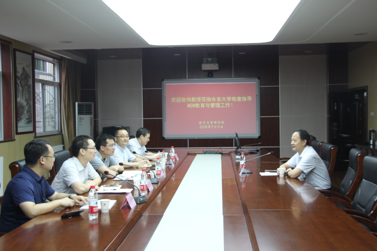 研究生院副院长柳有权介绍了我校研究生教育基本情况,袁长伟院长介绍了经管学院及研究生教育的基本情况,张圣忠副院长汇报了我校MEM教育的基本情况。张伟教授对我校在MEM教育工作上做出的努力表示肯定,并介绍了全国MEM教育的总体情况、发展趋势及主要模式。双方还就关心的问题做了交流。
