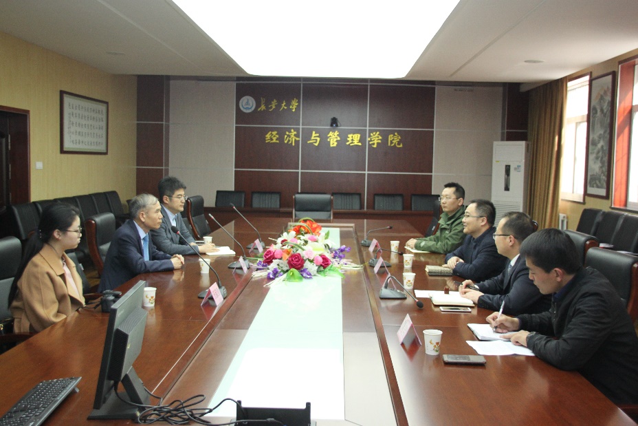2018年3月23日下午,韩国驻西安总领事馆李康国总领事、总领事馆金勇德研究员和行政员王叔莹女士一行访问我院,就“一带一路”背景下的中韩物流合作交流等事宜进行了交流。长安大学经管学院副院长张圣忠、院长助理马飞、物流系孙荣庭老师、运管系王超老师等参加了会议。会议由副院长张圣忠主持。
