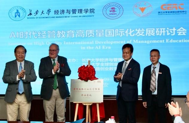 开幕式上,长安大学副校长杜强教授致欢迎辞。国际丝路创业教育联盟新任主席、英国职业大学校长Martyn Jones教授作主题发言,浙江大学王重鸣教授作题为《AI时代经管教育高质量国际化发展》的主旨报告。AMBA&BGA协会专家Martyn Jones、Michele O’Dwyer、George Iliev分别围绕AI赋能管理教育、国际认证框架创新与未来课程体系建设等议题作专题分享。