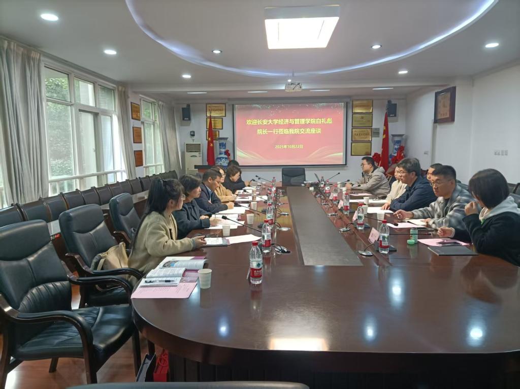 10月22日上午,学院副院长白礼彪带领各系主任及学院科研秘书赴西安理工大学经济与管理学院开展调研交流。西安理工大学经济与管理学院院长李建勋、副院长赵璟,以及院长助理乔建麒、科研秘书郑兰兰、应用经济学学科秘书刚翠翠、管理科学与工程学科秘书丁灵等出席了会议。