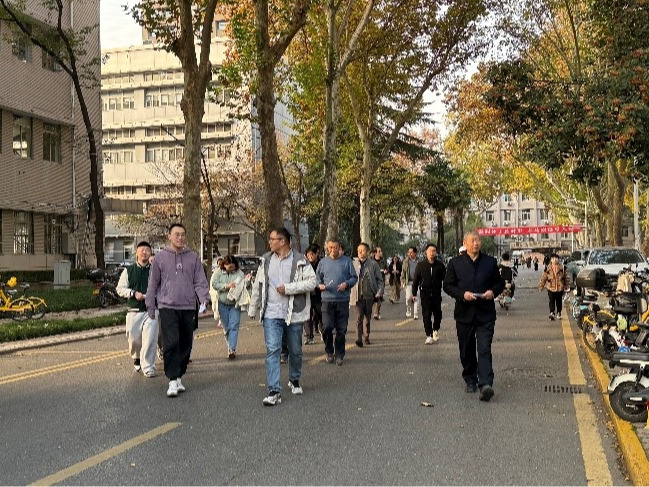 活动当日天朗气清,下午4时许,随着发令声响起,教职工们迈着轻快步伐沿精心设计的路线出发。路线串联体育场、图书馆、经管学院大楼等校园地标,沿途草木葱茏,步履间焕发别样韵味。行进中,大家或结伴畅谈工作生活,或驻足欣赏秋日校园,笑声与交谈声交织,展现出蓬勃向上的精神风貌。