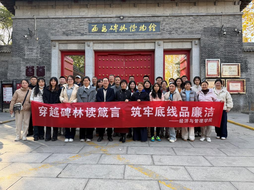 11月20日下午,经济与管理学院党委组织学院领导班子成员、学院科级干部、教工党支部支委学生党支部书记代表以及学院党外知识分子,前往西安碑林廉政教育基地开展穿越碑林读箴言,筑牢底线品廉洁主题党日活动暨党外知识分子联谊活动