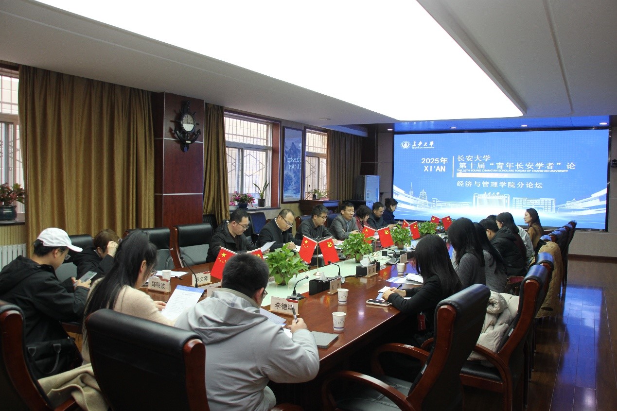 2025年11月27日下午,长安大学第十届“青年长安学者论坛”经济与管理学院分论坛在经管学院一楼会议室顺利举办。经管学院副院长马飞、白礼彪、杨伟,学院教师代表及海内外受邀青年学者共同参会,论坛由学院党委副书记徐永超主持。