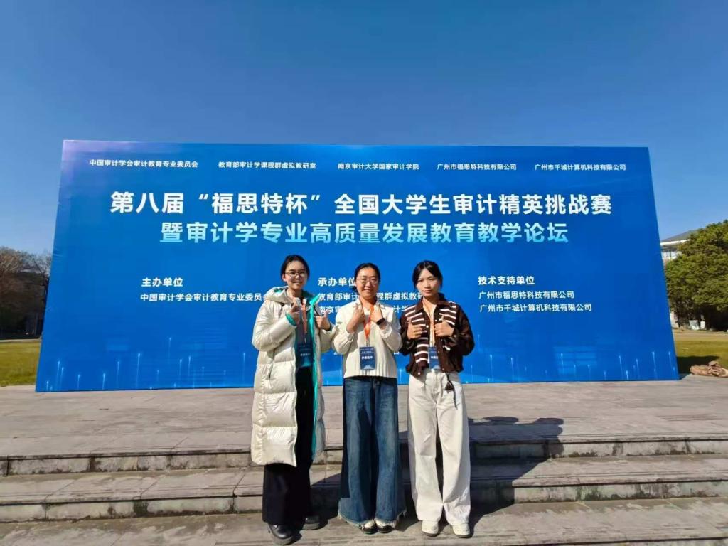 2025年11月29日,在南京审计大学举办的第八届“福思特杯”全国大学生审计精英挑战赛中,经济与管理学院2025级会计学专业研究生魏天乐、张阳、张琳玉组成的研究生团队斩获全国二等奖的优异成绩。会计系教师李辽宁、乔小乐、卫静获评优秀指导教师。
