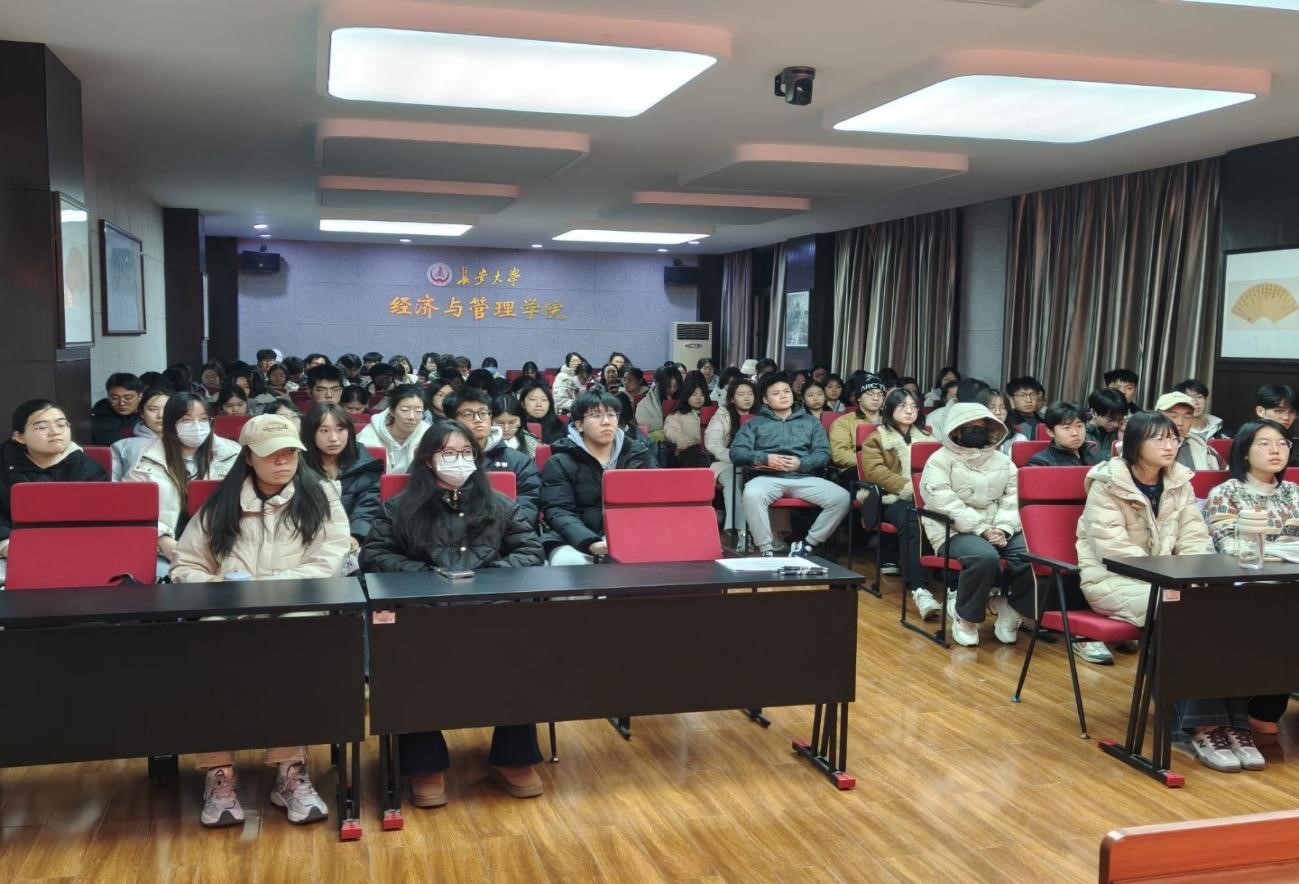 为深入学习贯彻习近平新时代中国特色社会主义思想,全面落实立德树人根本任务,切实加强对师生的思想政治引领,12月24日晚,经济与管理学院邀请长安大学马克思主义学院退休教师、关工委“思政宣讲团”成员张舒老师为学院师生讲授专题党课。经管学院学办主任李晔主持本次活动,经管学院2025年秋季入党积极分子培训班全体学员、土地工程学院、外国语学院师生党员代表参加本次党课学习。