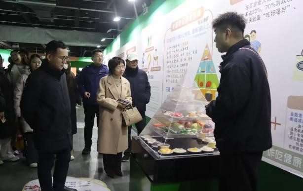 工作人员为参观师生讲解爱菊粮油全流程作业