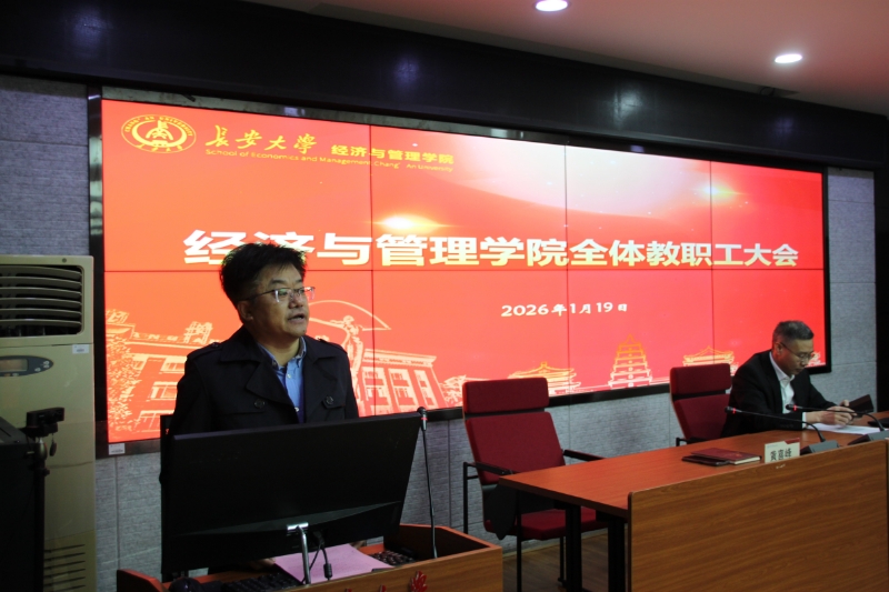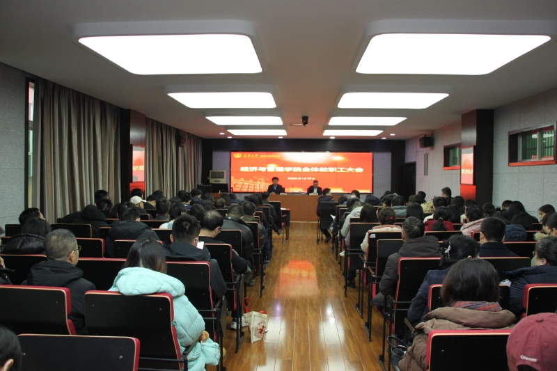 1月19日上午,经济与管理学院在学院四楼会议室召开全院教职工大会。会议由学院党委书记黄喜峰主持,全院教职工参加会议。