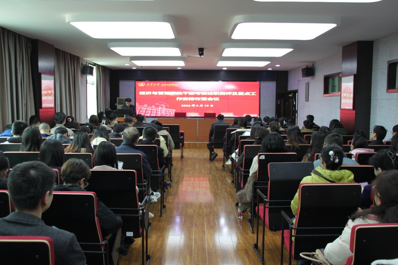 3月19日下午,经济与管理学院在407会议室召开干部考核述职测评及重点工作安排布置会议,学院全体教师参加,会议由院党委书记黄喜峰主持。