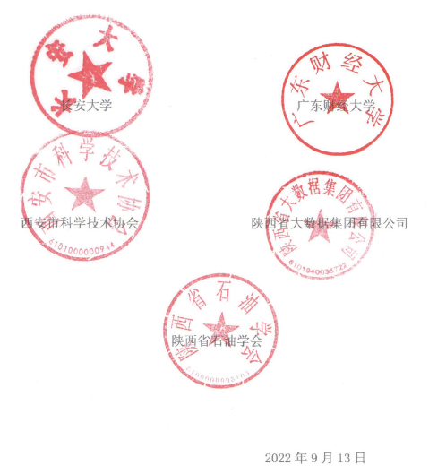 协办单位:长安大学地球科学与资源学院、长安大学经济与管理学院、长安大学智慧油气田研究院、广东财经大学中国数据研究院、长安大学科技园、长安大学国际教育学院、西安交通大学新闻与新媒体学院、长安大学老科协老教协、陕西聚典数字会务服务有限公司、西安贵隆数字化工程科技有限责任公司与外籍院士工作站、西安数源软件有限公司等