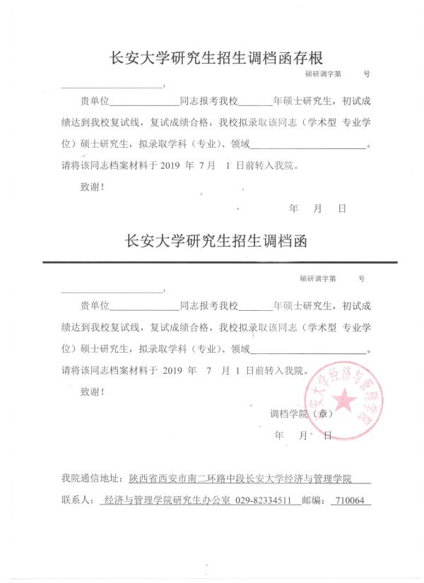 4.调档函通信地址:陕西省西安市南二环路中段长安大学经济与管理学院