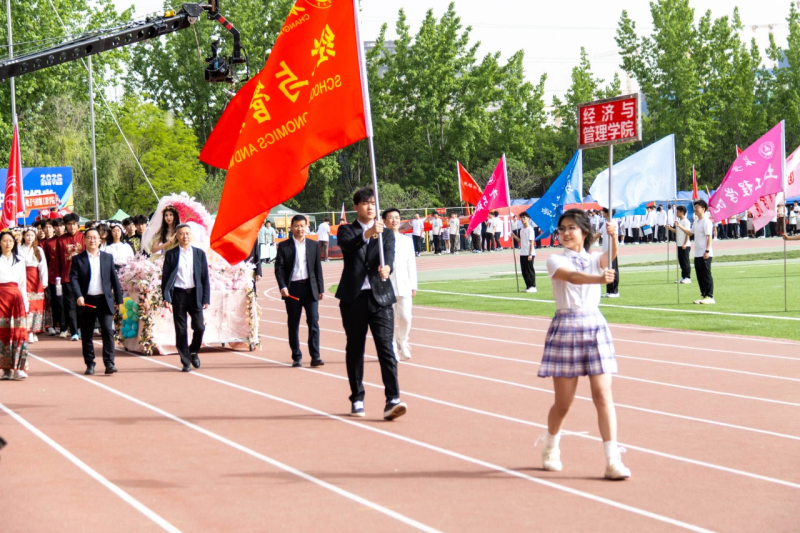 开幕式上,经济与管理学院方阵以昂扬姿态阔步入场。方阵队伍由学院党政领导、教师代表、学生代表共同组成,彰显着学院深厚的底蕴和团结一心的昂扬斗志。为期三天的激烈角逐中,我院全体师生勠力同心、积极进取,以非凡的实力与坚韧不拔的毅力在各项目中绽放光芒,最终获得42枚奖牌,其中金牌17枚、银牌10枚、铜牌15枚。